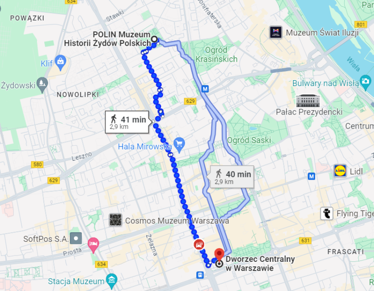 - From the Warszawa Gdańska Railway Station you can take tram 15 towards P+R Al. Krakowska, Muranów stop or walk about 15 minutes from the station.